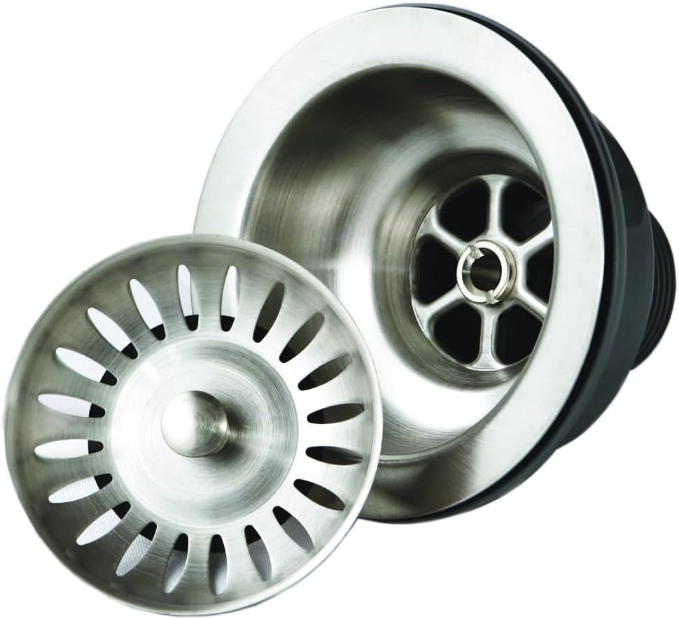 Houzer 190-9180 - 3-1/2 inch Stainless Steel Kitchen Sink Basket Strainer, Durable Food Catcher Stopper for Metal Kitchen Sink, Ideal for Filtering Waste and Preventing Clogs