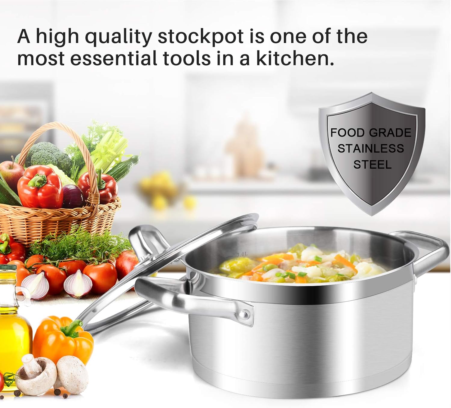 - HIGH QUALITY MATERIAL: This 4.2 quarts stockpot is manufactured with 304 food grade stainless steel. Heavy gauge impacted-bonded aluminum encapsulated bottom of the cooking set provides a quick, even and energy-efficient heating