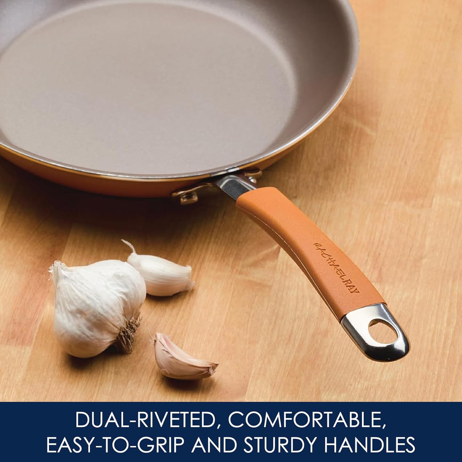 Rachael Ray Cucina Nonstick Cookware Pots and Pans Set, 12 Piece, Pumpkin Orange