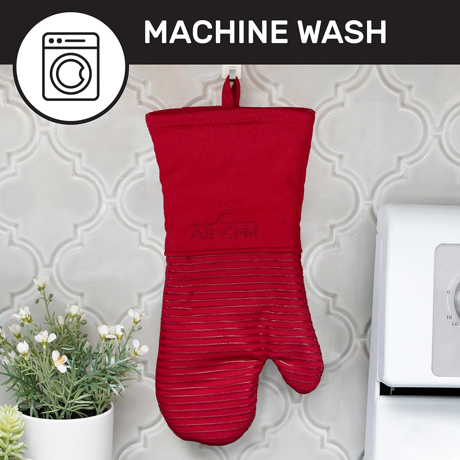 - MACHINE WASHABLE: All Clad's Silicone Oven Mitt Set is machine washable for hassle-free cleaning