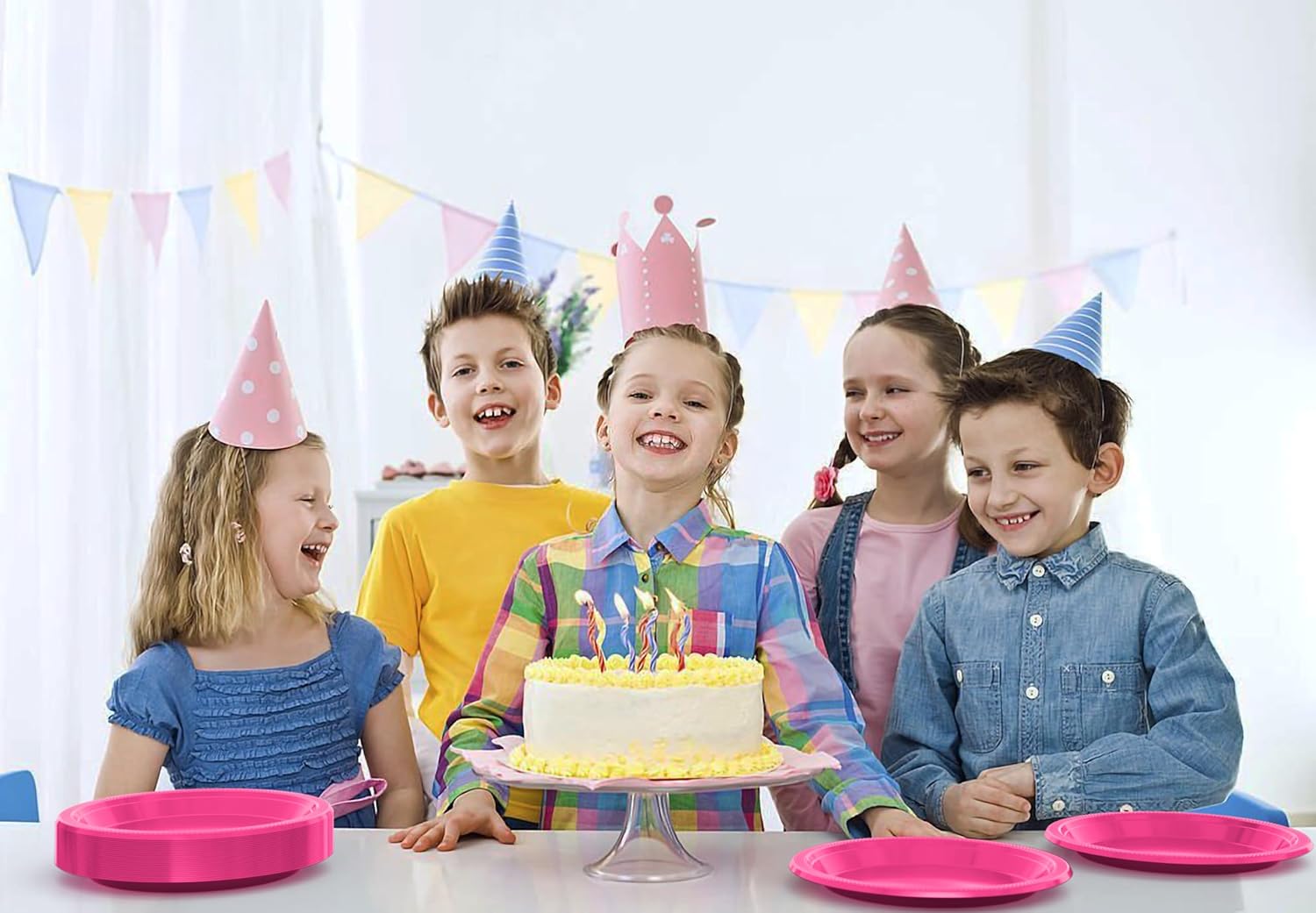 Exquisite Party Solids Hot Pink Plastic Plates For Party 9" Hot Pink Disposable Plates Heavy Duty Supplies 100 Pcs Plastic Dinnerware Sets Heavy Duty 350 GSM Disposable Dinnerware Set