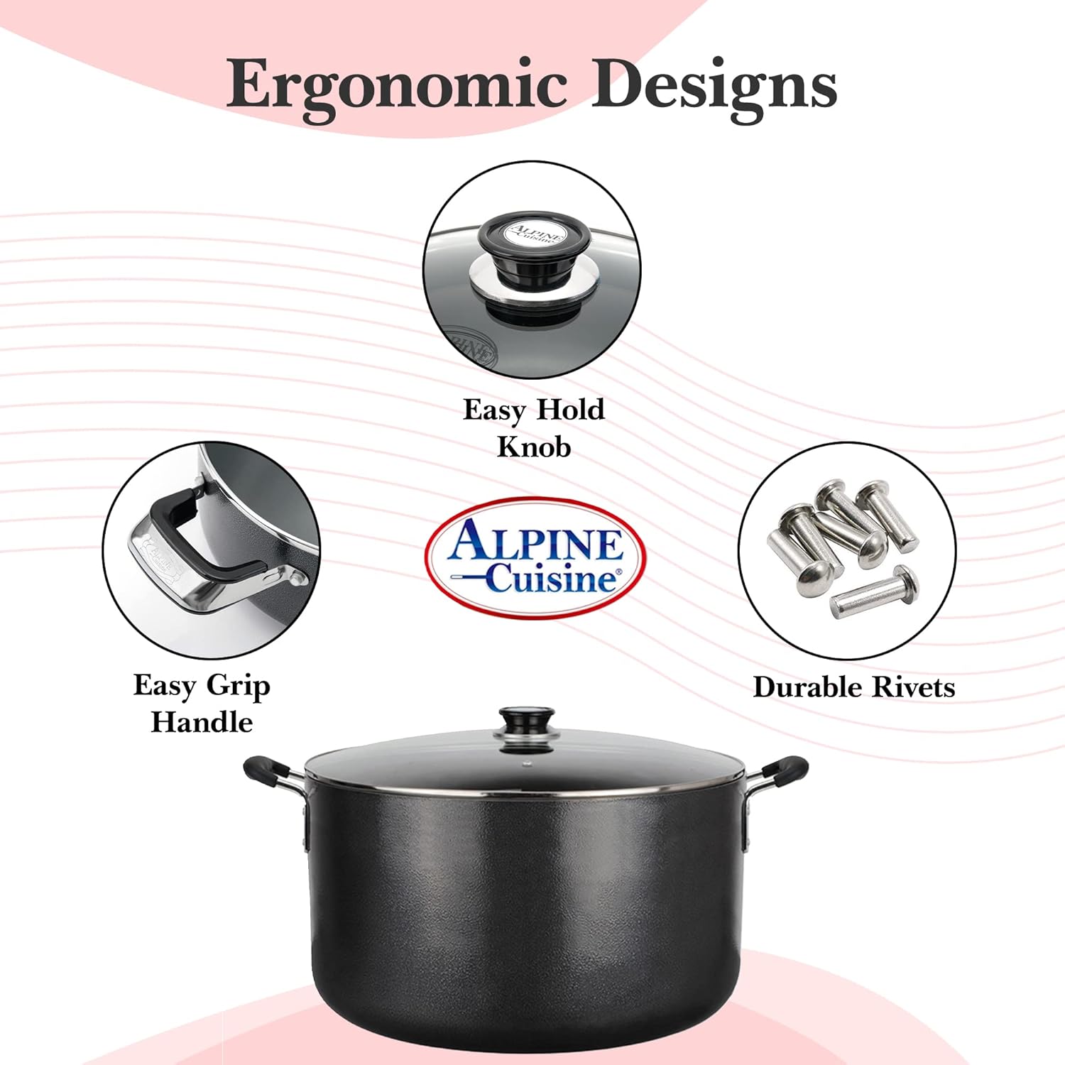 Alpine Cuisine 30 Quart Non-stick Stock Pot with Tempered Glass Lid and Carrying Handles, Multi-Purpose Cookware Aluminum Dutch Oven for Braising, Boiling, Stewing