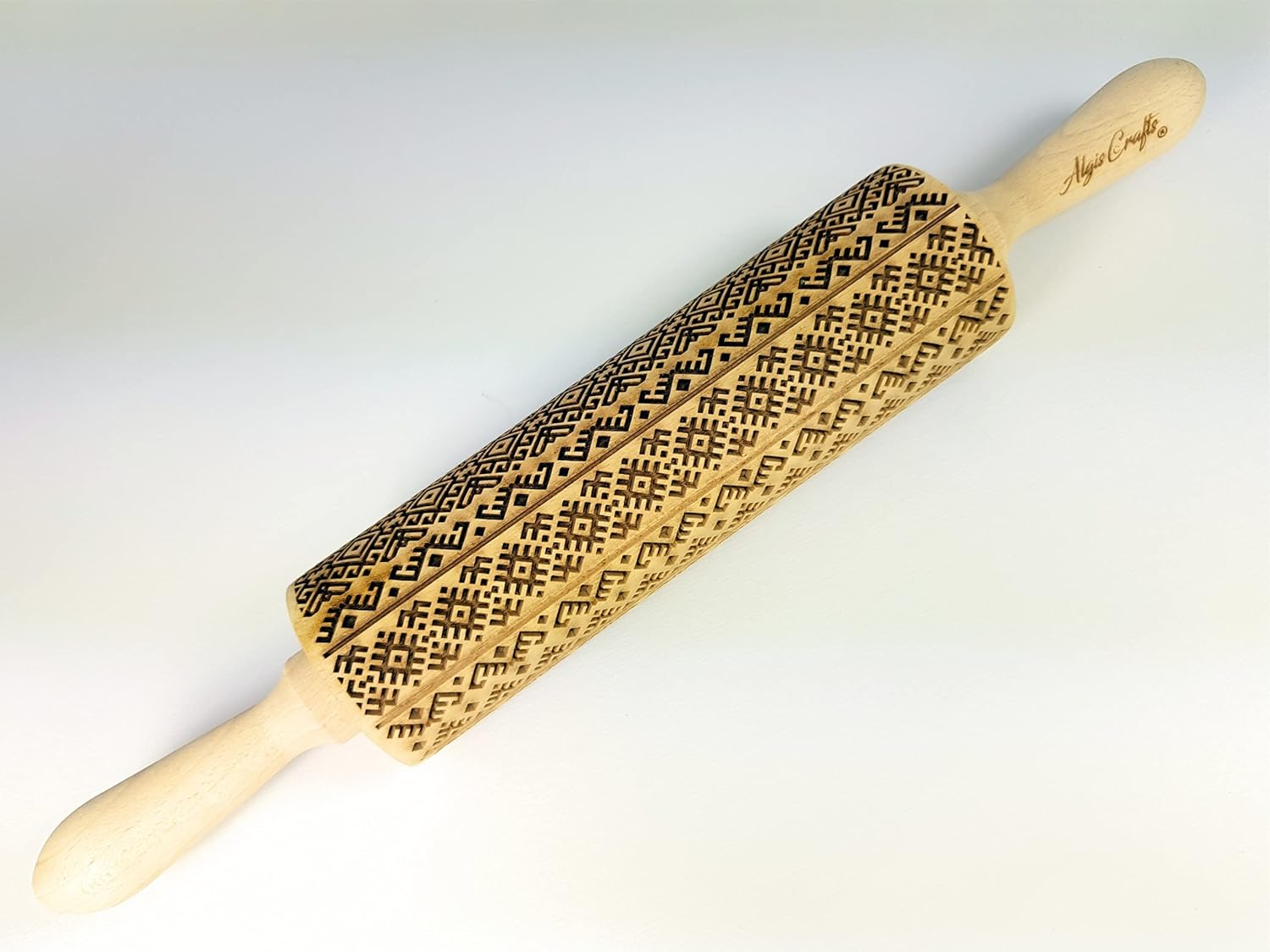 ETHNO RIBBON embossed rolling pin. Engraved dough roller with ethnical pattern for embossed cookies