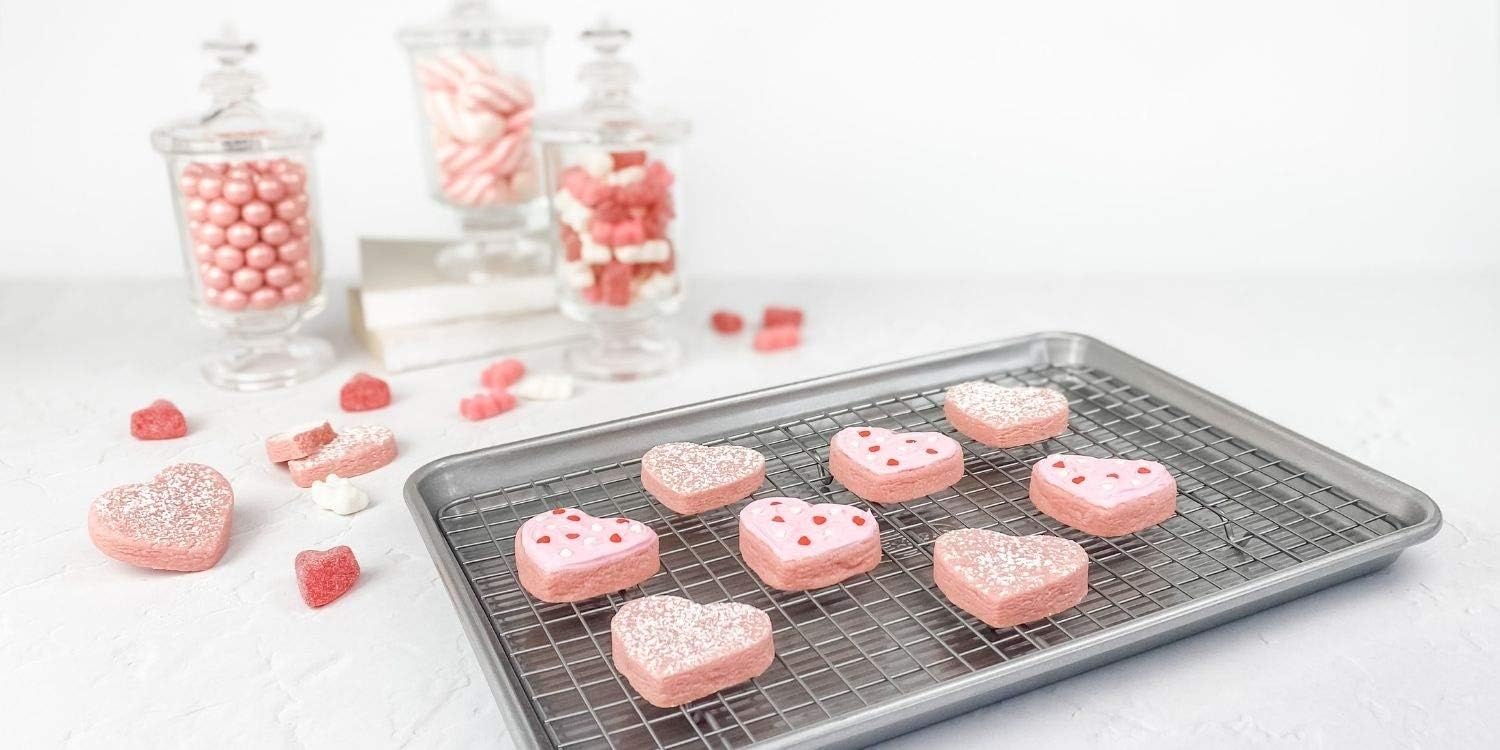 - Classic quarter sheet pan and cooling rack for baking and roasting cookies, vegetables, and cakes; commercial grade and heavy gauge aluminized steel