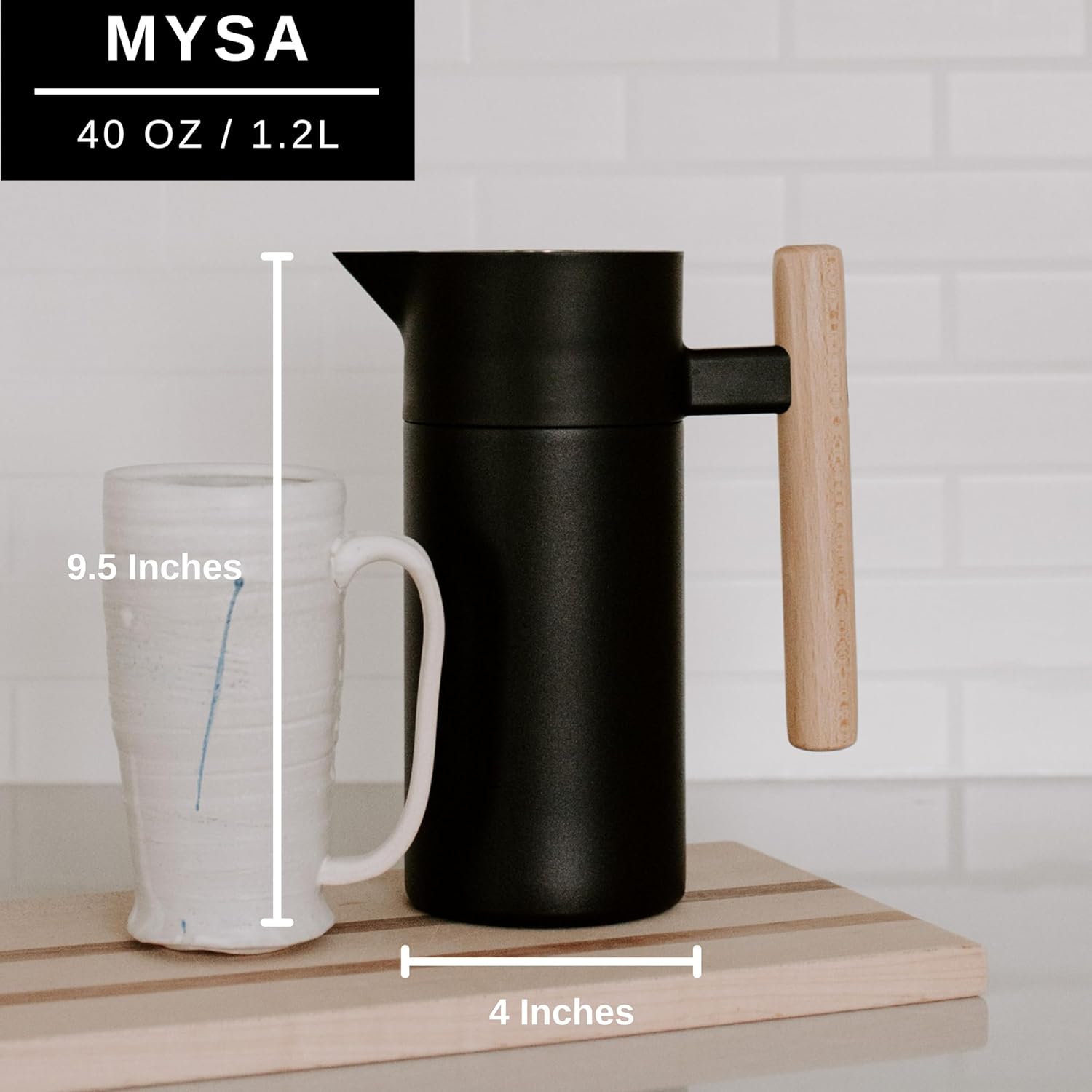 Hastings Collective Thermal Coffee Carafe 40 Oz - Stainless Steel Double Walled Vacuum Insulated Carafe - 1 Liter Thermal Coffee Pot Thermos, Travel Size Beverage Dispenser with Tea Infuser (Black)