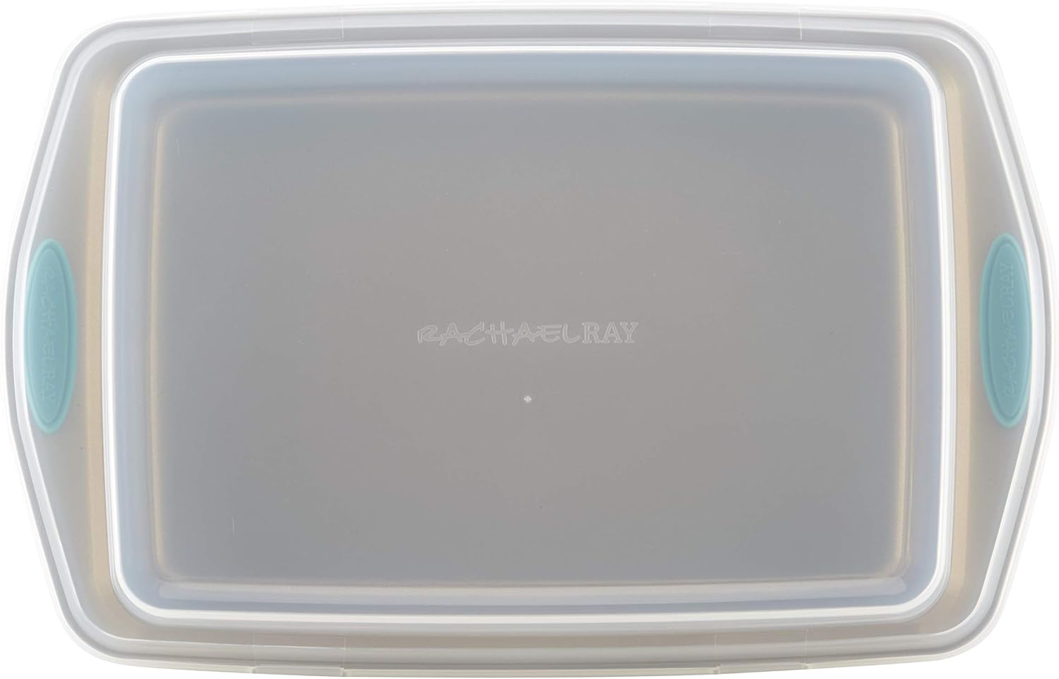 Rachael Ray Cucina Nonstick Baking Pan / Cake Pan With Lid and Grips, Rectangle - 9 Inch x 13 Inch, Brown