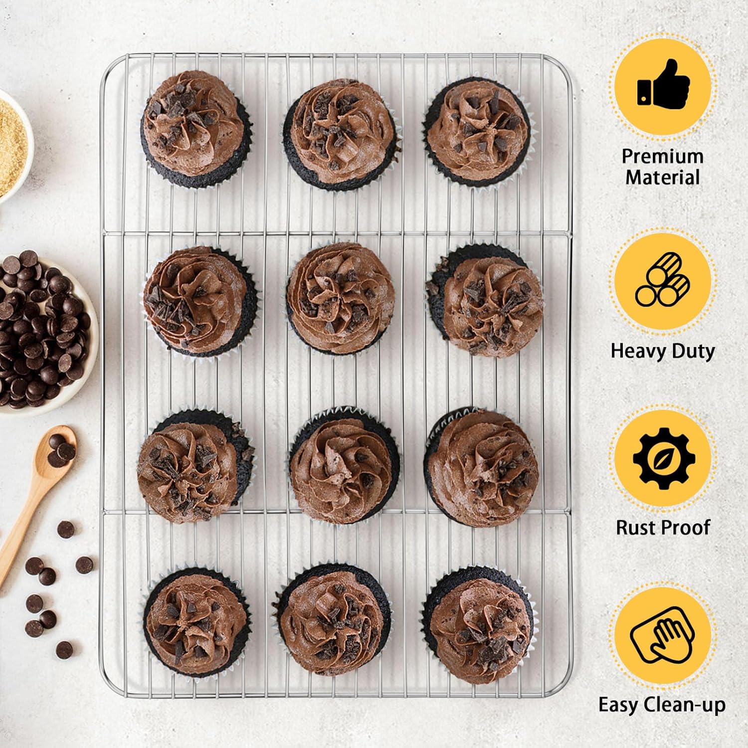P&P CHEF Cooling Baking Rack Pack of 2, Stainless Steel Cooling Racks for Cooking Baking Roasting Grilling Drying, Dense Wires & Smooth Edge, Easy to clean, Silver, 15.3" x 11.25"