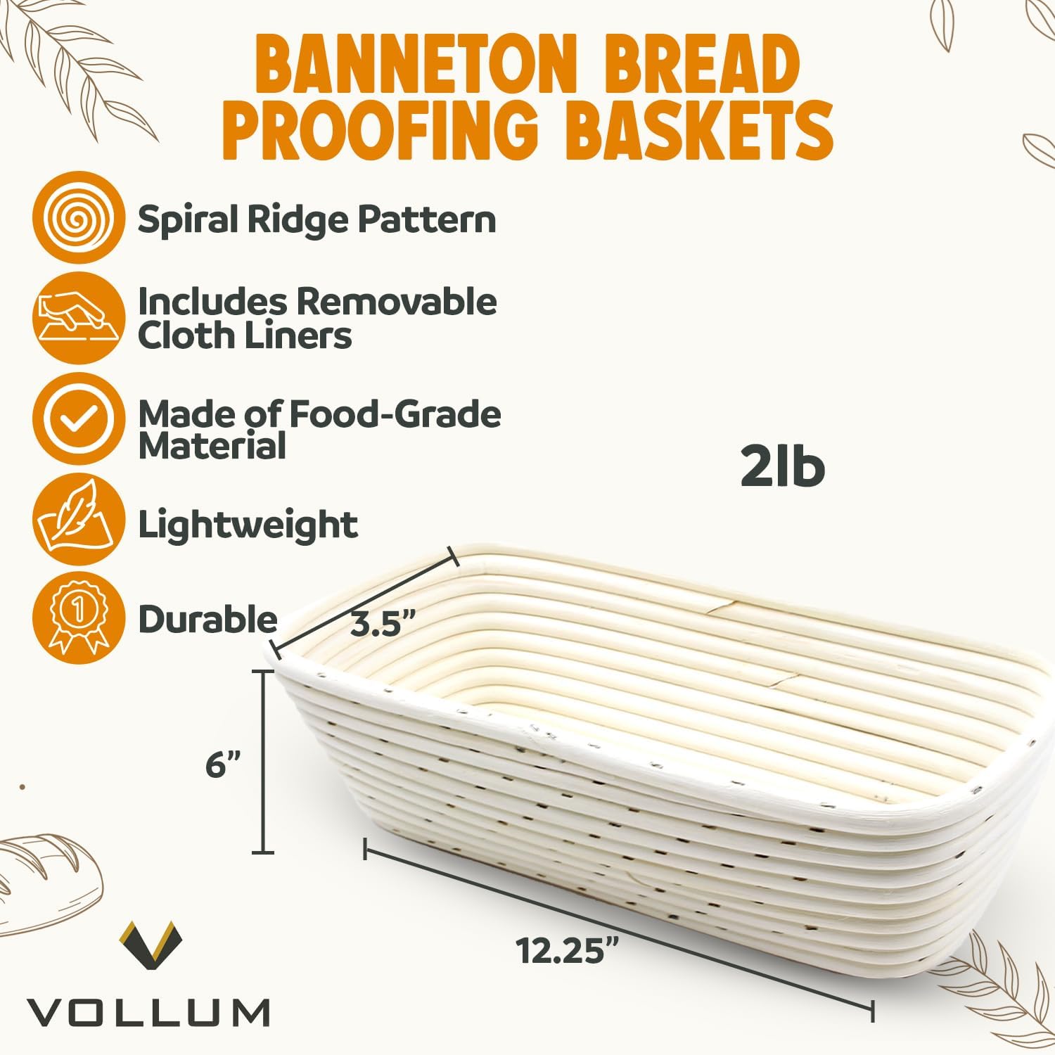 Banneton Bread Proofing Basket Sourdough Proofing Basket for Beginners & Professional Bakers, Handwoven Rattan Cane Bread Maker with Linen for Artisan Breads, 12.25 x 6 x 3.5 Inch, 2-Lb Rectangular