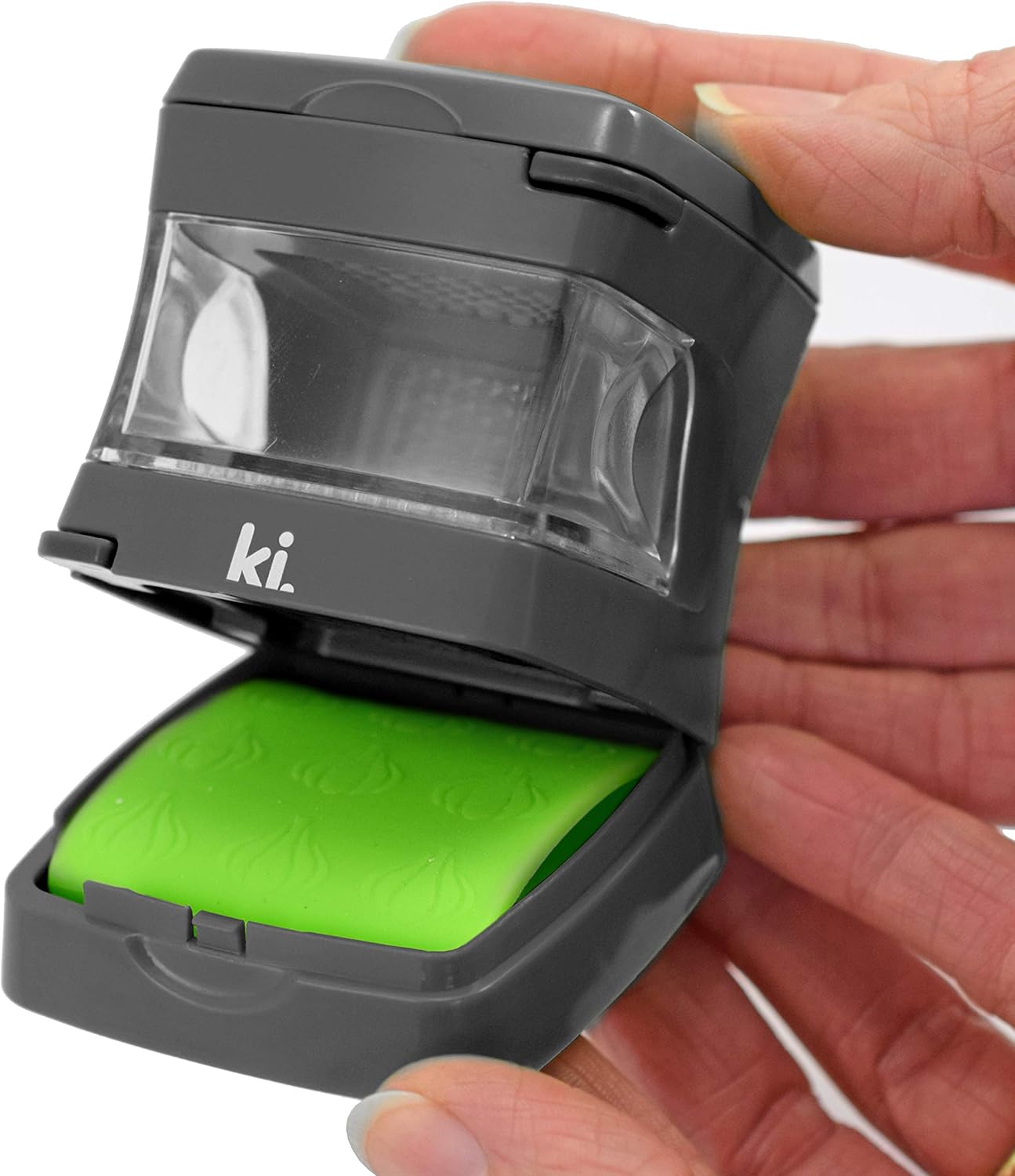 - Leaves no odour on hands; Use the silicone peeler to peel garlic, then simply add garlic in between the top and selected blade, then push down; Clear container catches crushed garlic and allows for easy transfer directly to any dish or recipe
