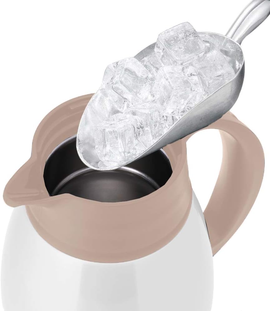 - USER FRIENDLY: GiNT 65oz large thermal carafe features extra wide top opening, easy for cleaning and adding ice cubes. Simple-push button enables single-hand pouring without leaking, dripping or spilling. Ideal used as bedside, restaurant, office, party, camping, travel insulated coffee carafes.