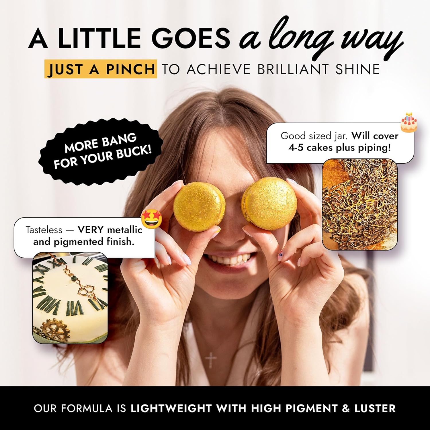 - EASY TO USE: Our gold luster dust is incredibly versatile. Apply with a wet brush, airbrush, or dry brush, and even mix into beverages. Achieve professional-looking results effortlessly at home, whether decorating halloween cakes or adding shimmer to cocktails.