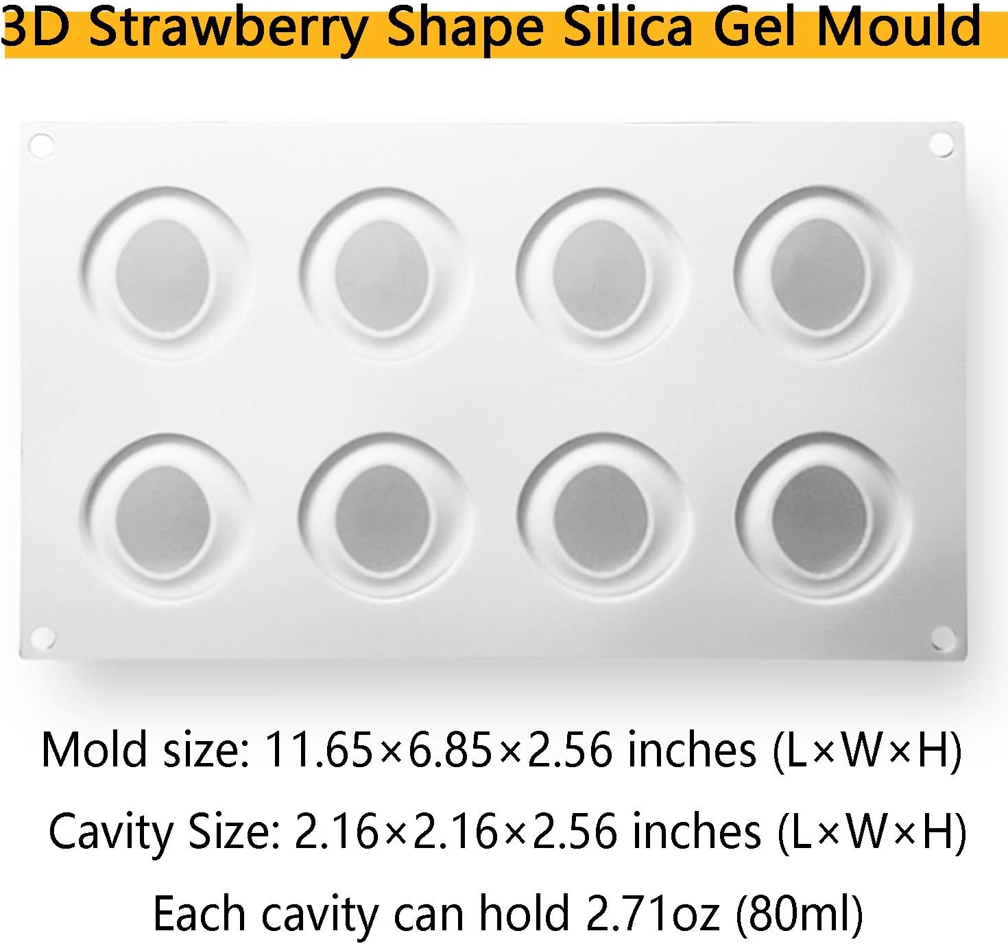 OCPO KITCHEN Strawberry Silicone Mold for Baking Mousse Cake, Fruit French Dessert, Pastry, Chocolate, Ice Cream Mould, Cake Decoration Mold, 3D Strawberry Shape (8-Cavity)