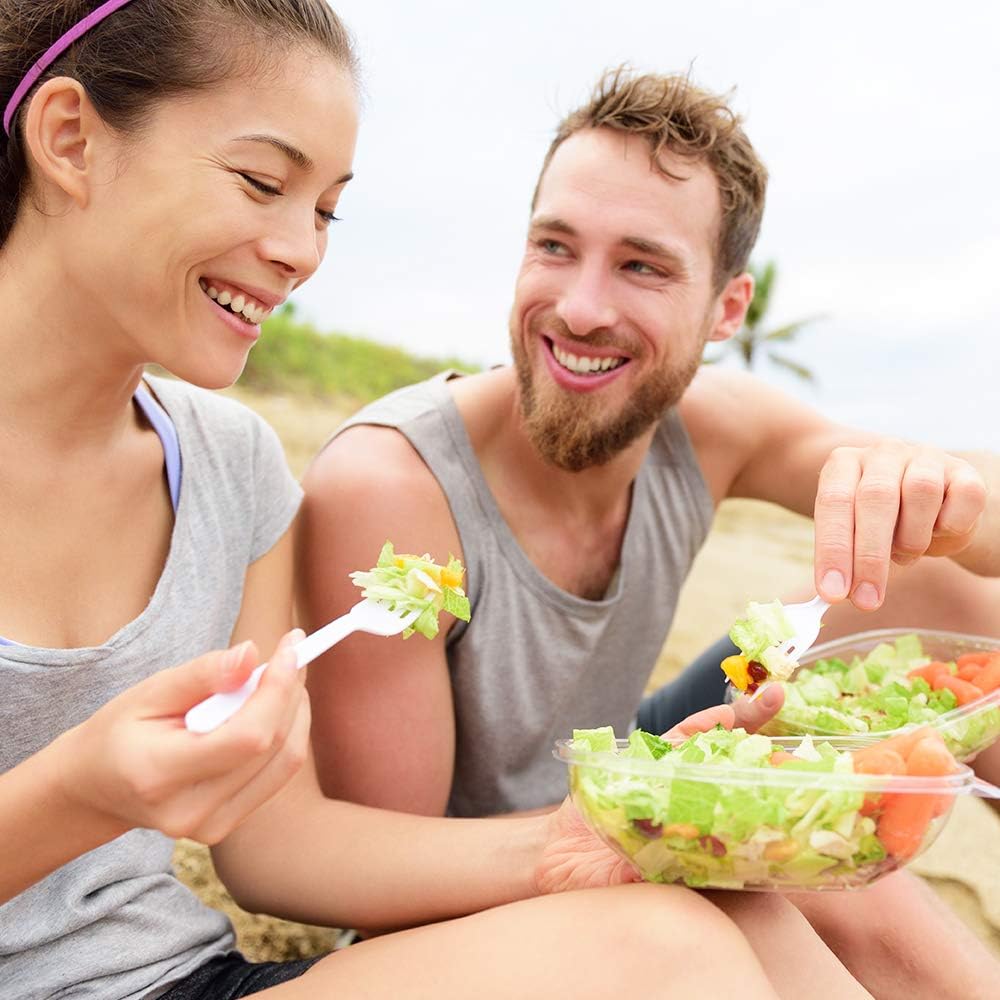 - EXTRA HEAVY WEIGHT CONSTRUCTION: Heavy duty, disposable, plastic forks. The heavyweight plastic construction is made of food-grade plastic that is very sturdy, and ideal for solid foods like steaks, salads, fish, corn and more.