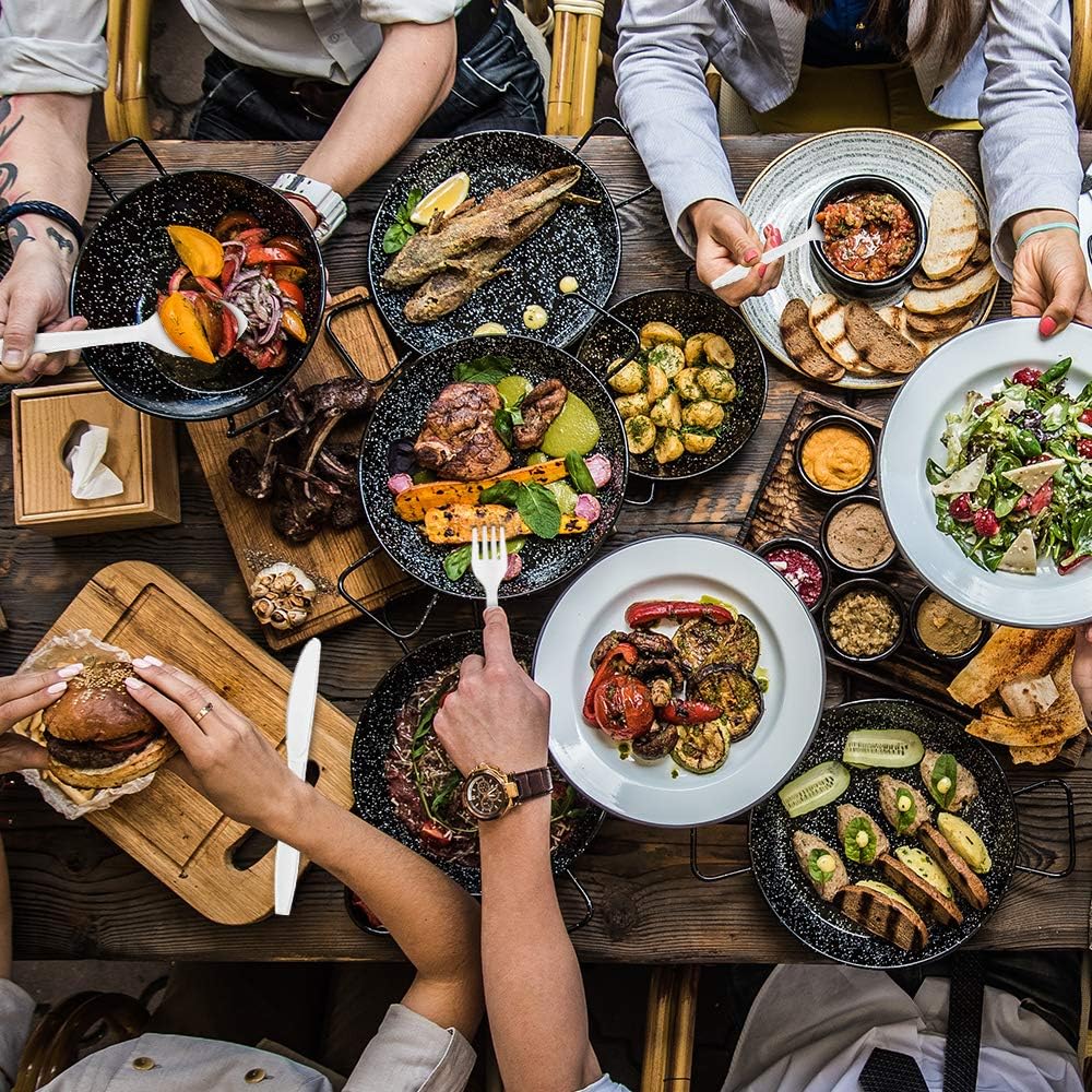- CLASSIC DESIGN: Comparable to regular cutlery in size design, print, color, elegance, with large and comfortable handle. Made with food-grade hard plastic- the strongest out there