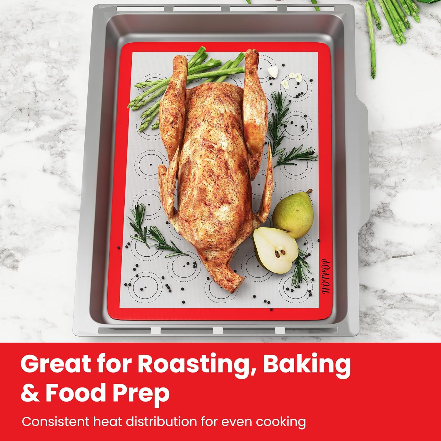 - Multi-Purpose Silicone Mats: Versatile silicone baking mats available in colorful designs; half-sheet size is 16.5 x 11.6 inches, quarter-sheet size is 11.5 x 8.5 inches for baking or roasting