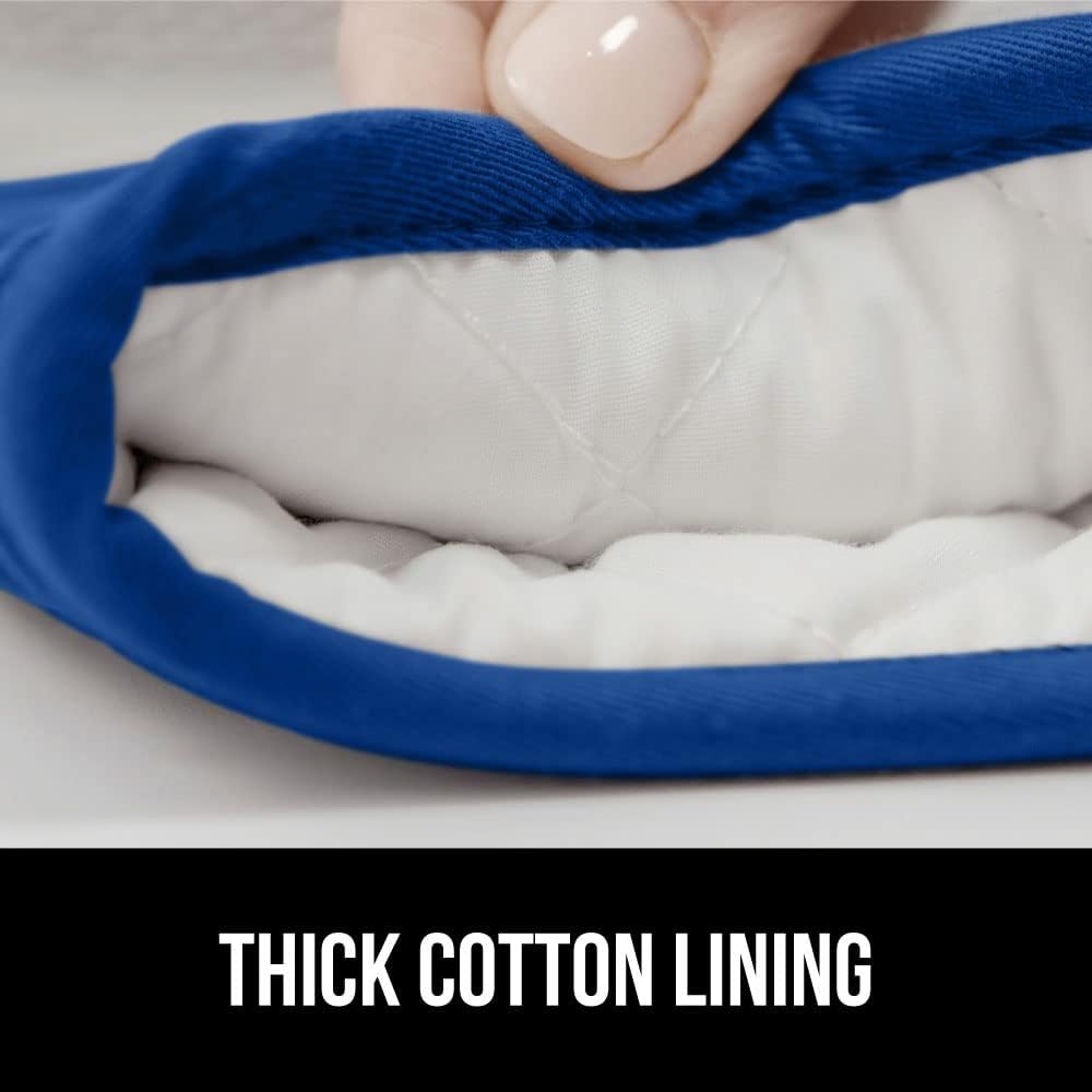 GORILLA GRIP BPA-Free Soft Silicone Oven Mitts, Heat Resistant and Waterproof Cooking Gloves, Thick Cotton Lining, Flexible Gripping for Baking Grilling, Kitchen Potholders Set of 2, 12.5x8.3, Blue