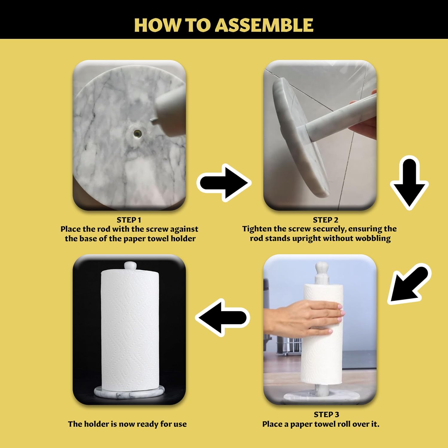 - PAPER TOWEL HOLDER- This paper towel holder stand has been designed with the primary use of holding paper towel rolls for easy usage. The marble stone has been designed so that most rolls can easily fit into the holder and the rolling and tearing of towels is an extremely smooth process.