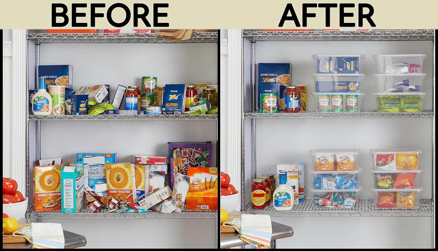 - SEE-THROUGH DESIGN: Durable, clear plastic bins make it easy to locate and access frequently used items