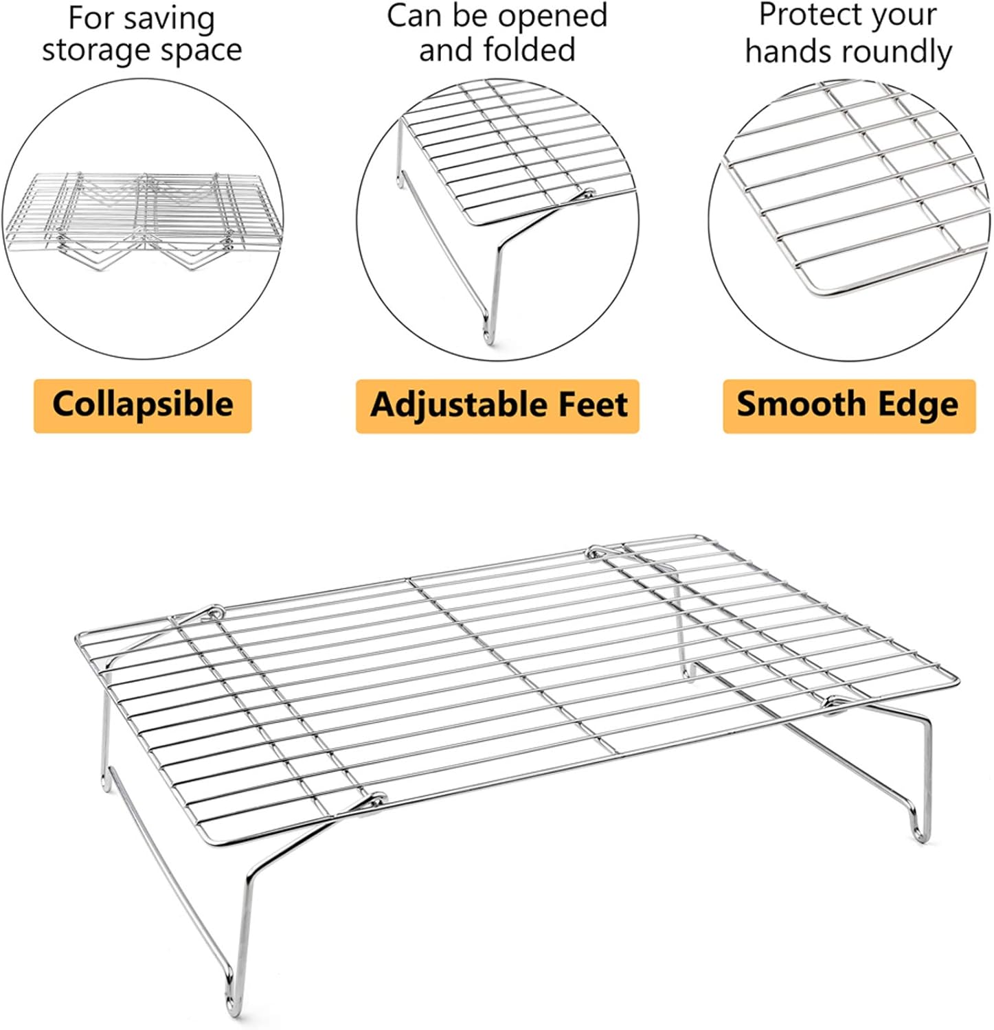 - FLEXIBLE & RAISED FEET - The flexible feet can be swung over 90°, Come with 3.5-inch height when it expanded fully, Make the rack stack stably on another rack, Provide higher and larger space to cool and bake more food at once, Collapsible feet for easily folding to 1.3-inch height, Easy storage in your cabinet or drawer