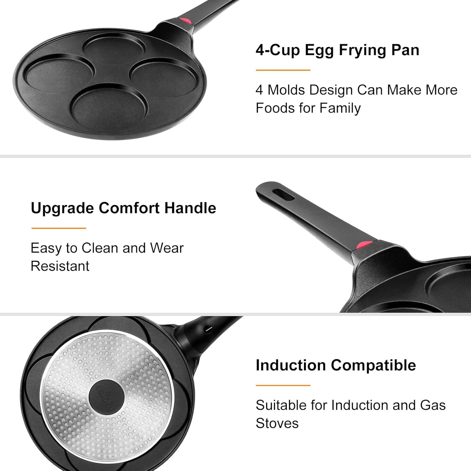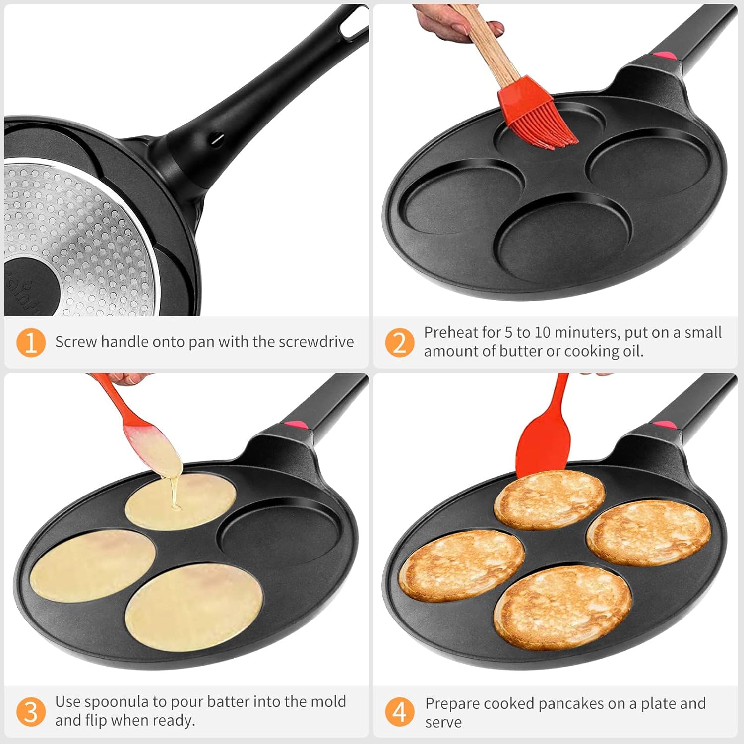 - Heats Quickly & Evenly – Made of sturdiness die cast aluminum, durability and light weight. 3 - layer thickened pot bottom evenly heated ensures maximum heat transfer for fast, not leave dark spots on your mini pancakes / omelets.