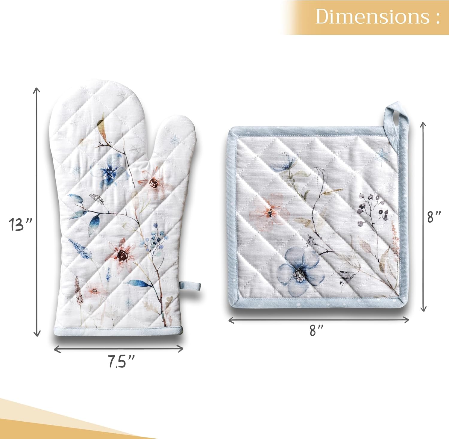- Artistic style: Add charm to your kitchen with our oven mitt pot holder set featuring watercolor designs inspired by traditional European motifs. Stylish and functional kitchen accessories for every home cook or gift occasion.