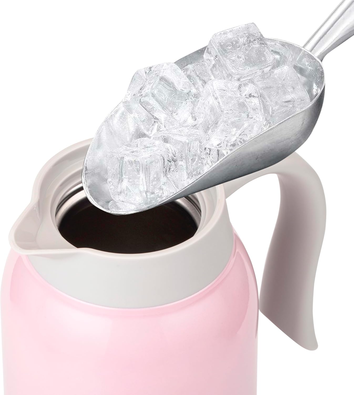 - USER FRIENDLY: GiNT 51 oz large thermal carafe features extra wide top opening, easy for cleaning and adding ice cubes. It’s comfortable handle design is made for single hand, simple-push button enables pouring without leaking, dripping or spilling. Ideal used as bedside, restaurant, office, party, camping, travel insulated coffee carafes.