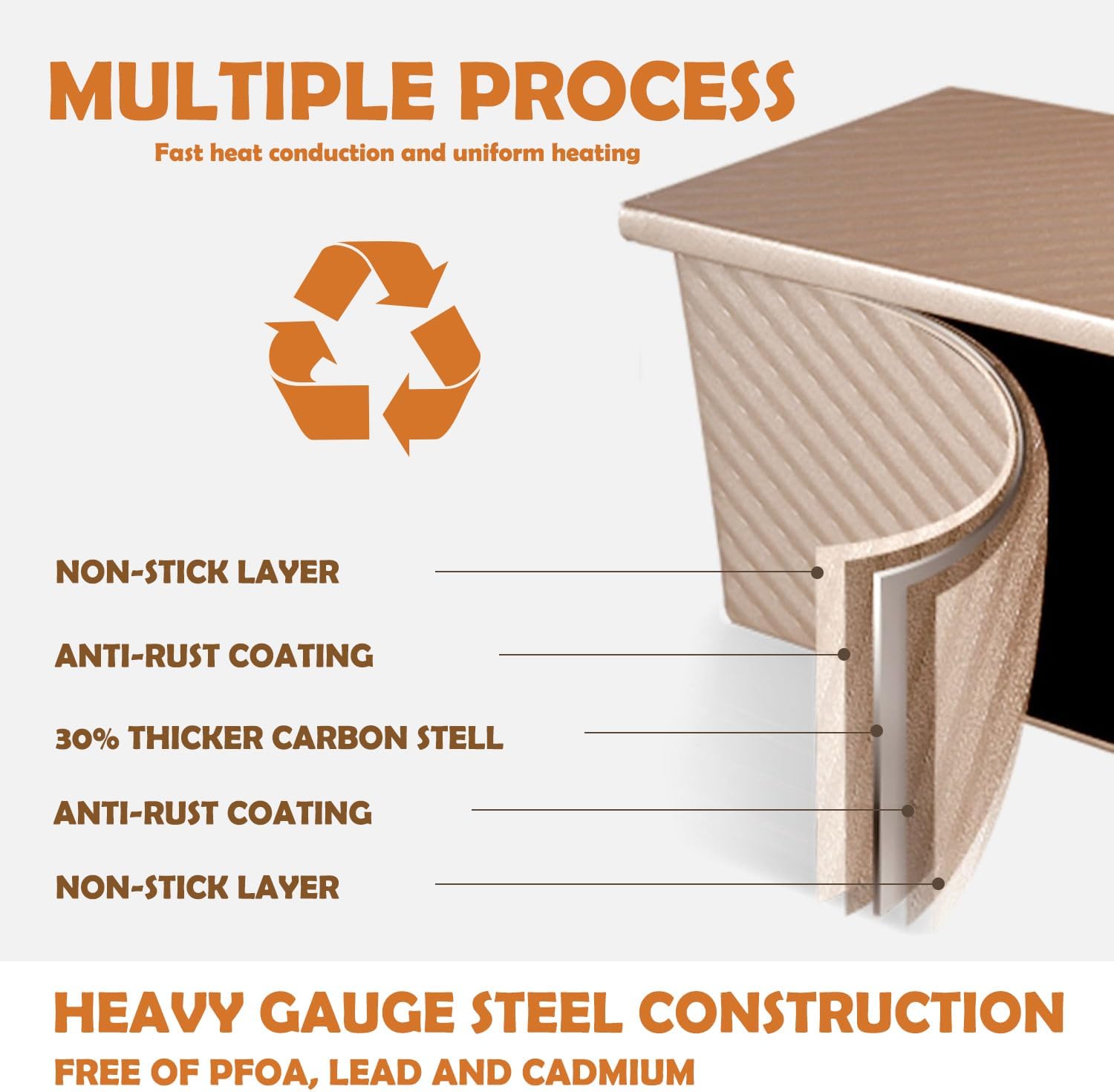 - This Loaf Pan Toast Mould is treated with a special non stick coating, which does not absorb grease and water and is easy to clean. This Loaf Pan Toast bread pan is suitable for household ovens and should not be used in commercial ovens as much as possible!!