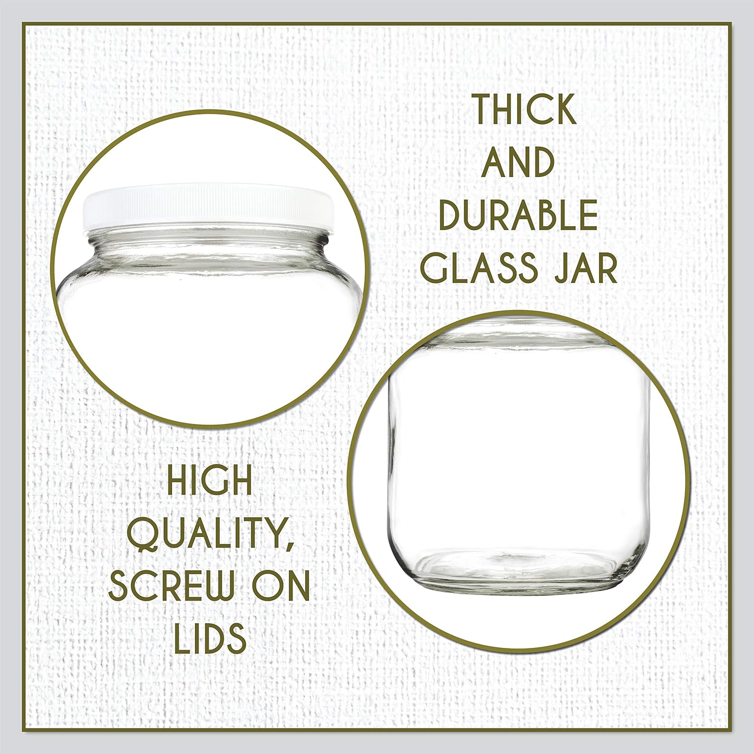 - Premium gallon glass mason jars with easy twist foam lined plastic lids