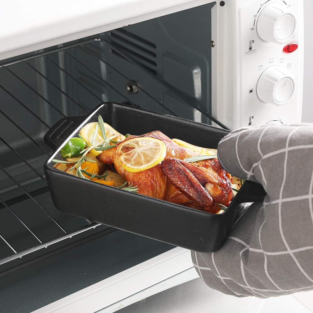 - 【Stylish Rectangular Baking Dish】The rectangular baking dish is equipped with a double handle design for easy food transport from the oven to the table. It is also a charming decoration in your kitchen and dining table which may impress your guests!