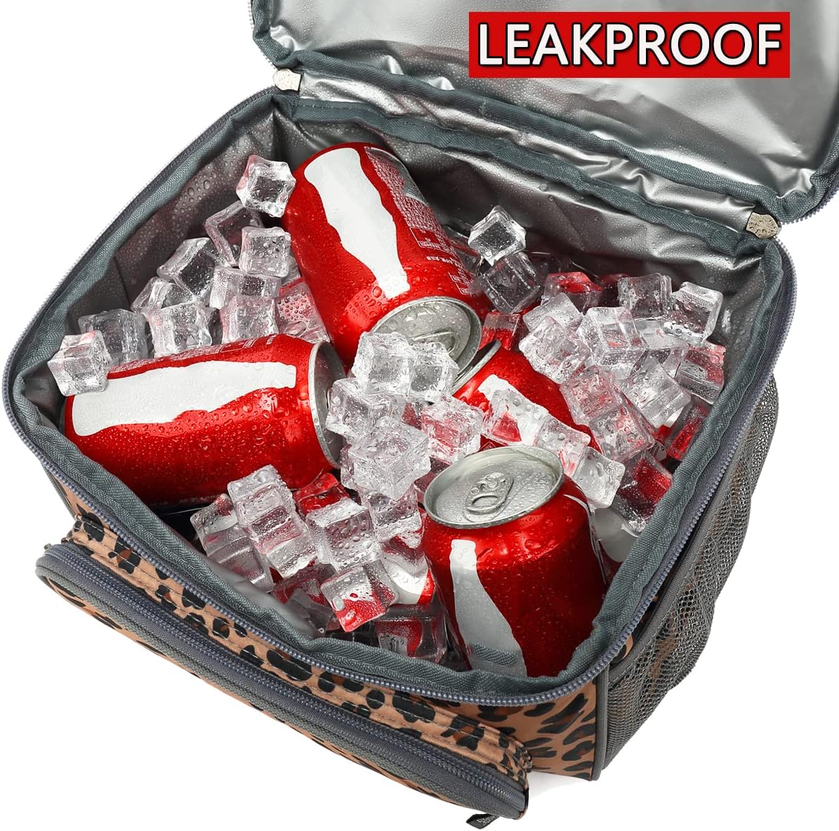 FlowFly Double Layer Cooler Insulated Lunch Bag Adult Lunch Box Large Tote Bag for Men, Women, With Adjustable Strap,Front Pocket and Dual Large Mesh Side Pockets