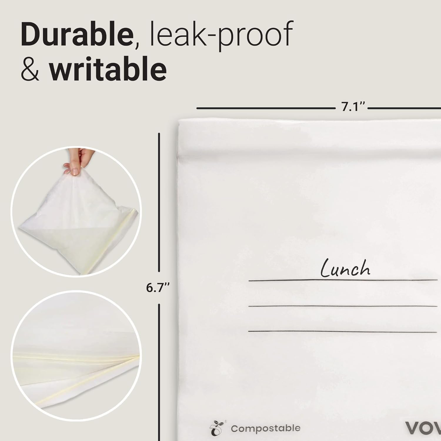 Vove Compostable Zip Bags | 30-Pack Sandwich Size | Biodegradable Food Storage | PLA & PBAT Eco-Friendly | Zero Waste Kitchen | Plastic-Free | FSC & DIN Certified