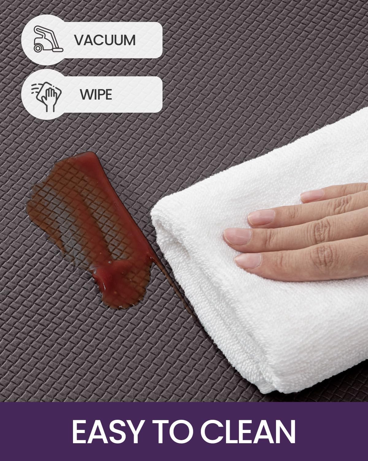 - Waterproof and Stain Resistant: The water resistant surface ensures that cooking spills won't stain the mats.Keep liquids from soaking through, protecting the hardwood floor