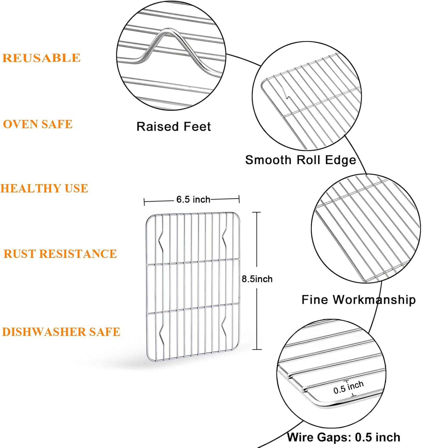 - Cooling Rack: The baking rack welded firmly with dense lines, Lifts food above juices to allow hot air evenly circulate and bake, Removable for efficient cooling, Each roasting rack perfectly fits in the small baking pan