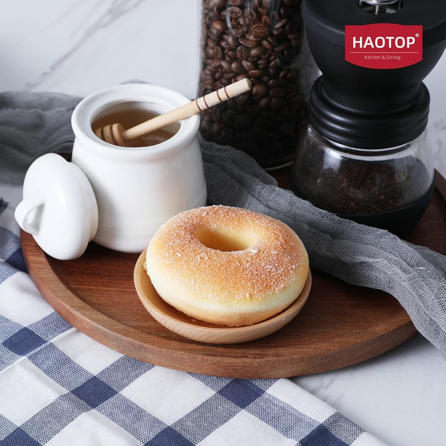 HAOTOP Ceramic Honey pot with Lid and Honey Dipper,Porcelain Honey Jar Easy to Clean and Dishwasher Safe,12oz (White)