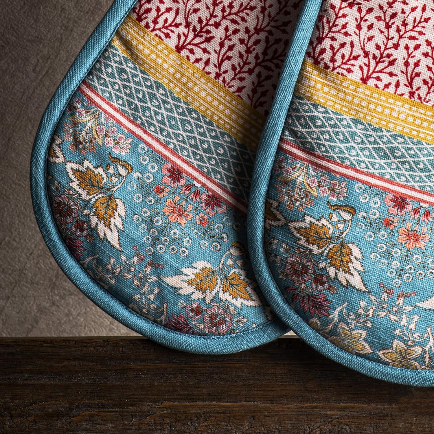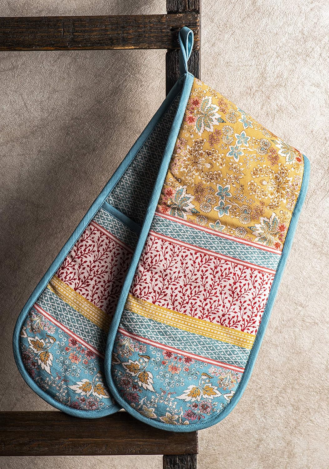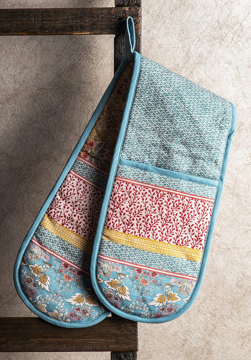 - Package includes: Includes 1 double oven mitt sized 7"x35". Perfect for handling hot cookware safely while adding a touch of European elegance to your kitchen. Designed in Europe and made in India with care