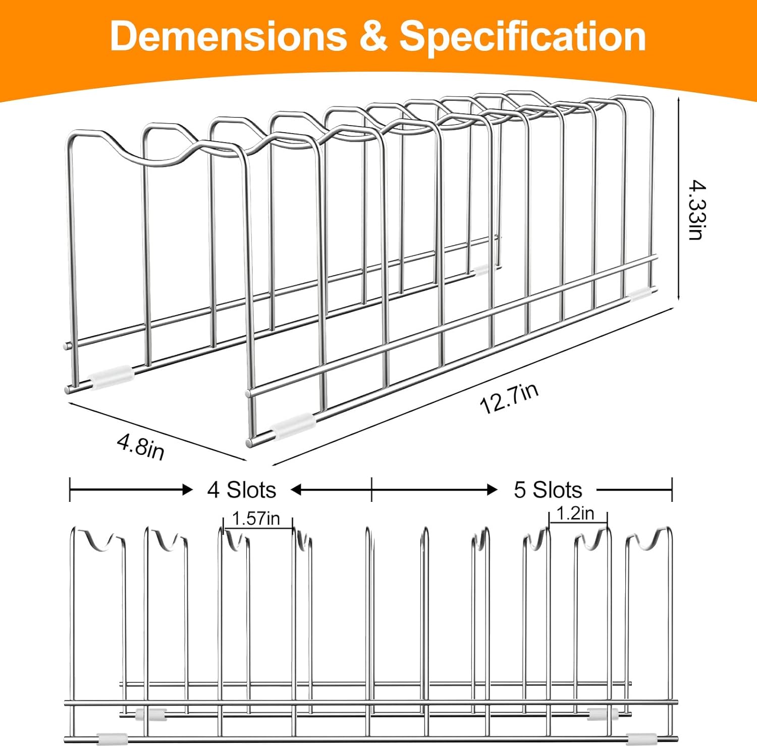 - ❤【Multifunctional Products】:It perfect for pans, pot lids, dishes, cookie sheet, bakeware, cutting boards, pot lid, griddles, books, discs and files. And the rungs separate the items to make it easy to grab the skillet or lid, keep your kitchen cabinets and countertop orderly.