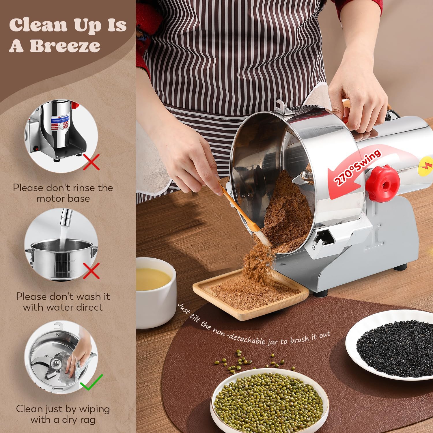 Moongiantgo 2000g Grain Mill Grinder Commercial Spice Grinder 3000W Stainless Steel Electric Pulverizer Dry Grinding Machine for Wheat Corn Rice Pepper Herbs Coffee Beans (2000g Swing, 110V)