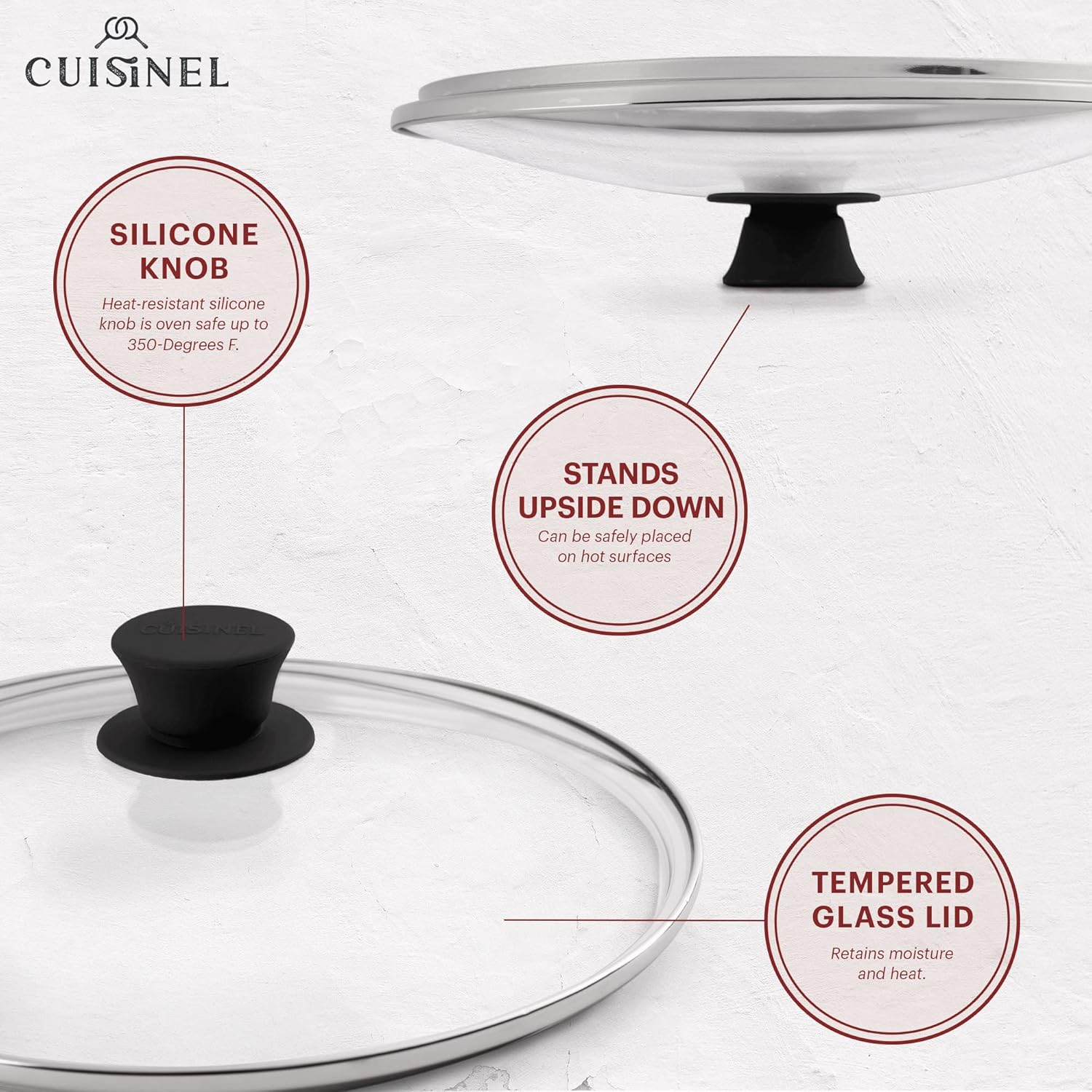 - OVEN-SAFE TEMPERED GLASS: Thermal reinforced glass is much safer and more durable than regular glass. Oven-safe up to 350-Degrees ° F make this sturdy replacement cover an essential part of your cookware accessories collection. Tempered glass can withstand drastic temperature changes and won't shatter under pressure. Transparent glass lids allow you to flaunt luxurious photo-perfect dishes in progress.