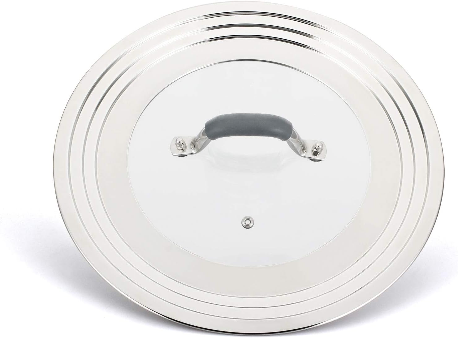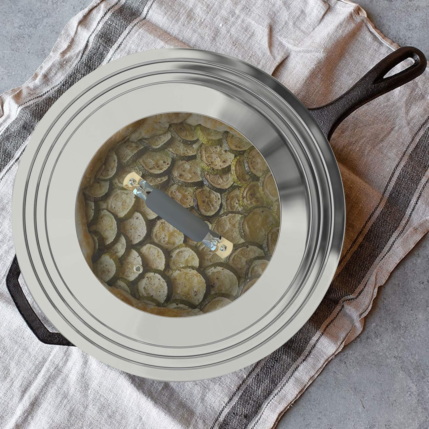 Universal Pans Pots Lid Cover Fit All 8.25 Inch to 12 Inch Pots/Pans/Woks Stainless Steel and Glass Lid with Heat Resistant Knob, Gray