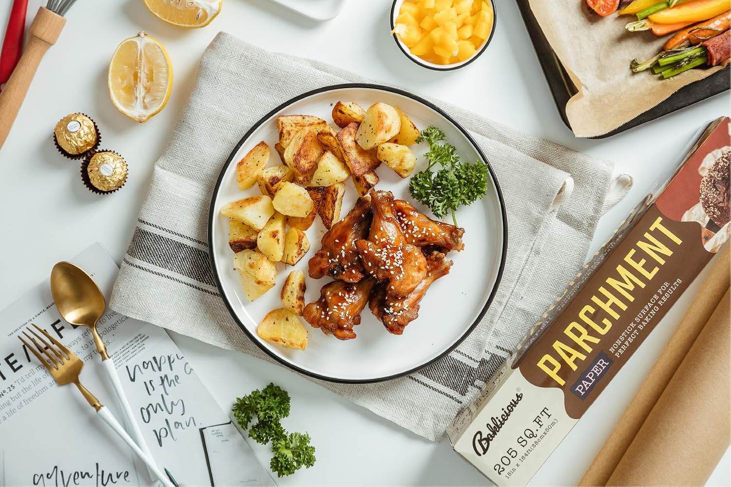 - NON-STICK BAKING PAPER FOR OVEN: Our nonstick parchment paper roll for baking easily release your stickiest food without sticking it to the baking pan. Most food items conveniently slide off from the baking tray and you just need to remove the brown parchment paper. These non-sticky baking paper also exclude any inconvenience of using oil or sprays for perfect baking.