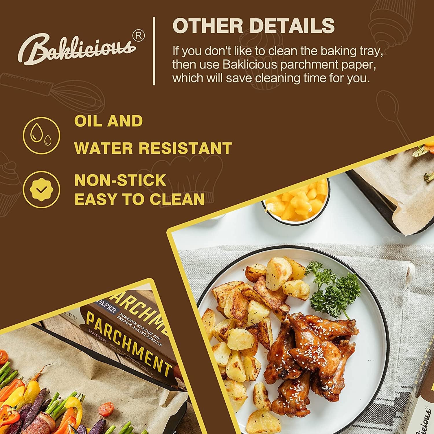 - SUITABLE FOR ANY BAKEWARE: Do you love baking but often bothered by the size deviation between parchment paper and baking tray? Baklicious parchment paper for baking are 15 in x 210 ft, 260 square feet x 2 in total. You can crop any size what you want by using baking paper roll.