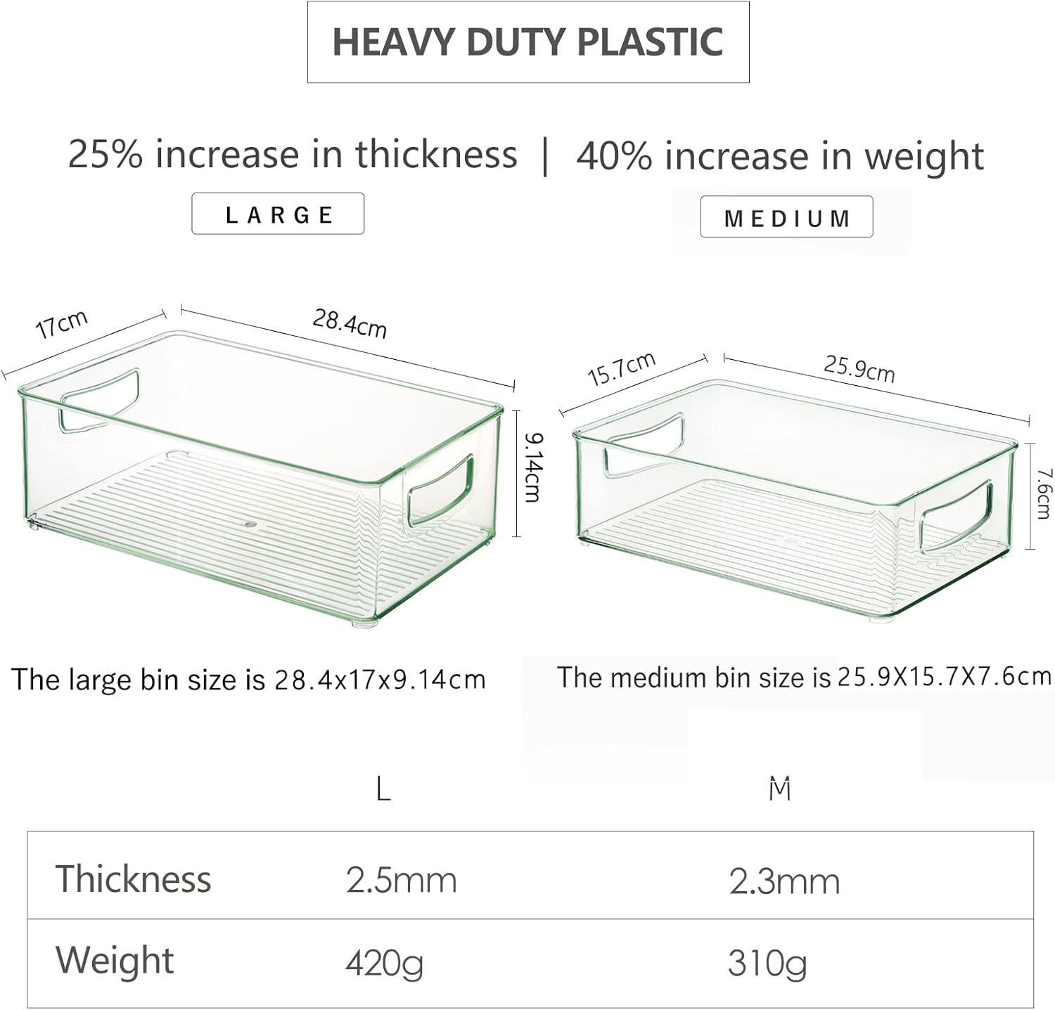 - 2 Sizes Storage Bins: This pantry organizer set comes with 4 Large and 4 Medium bins
