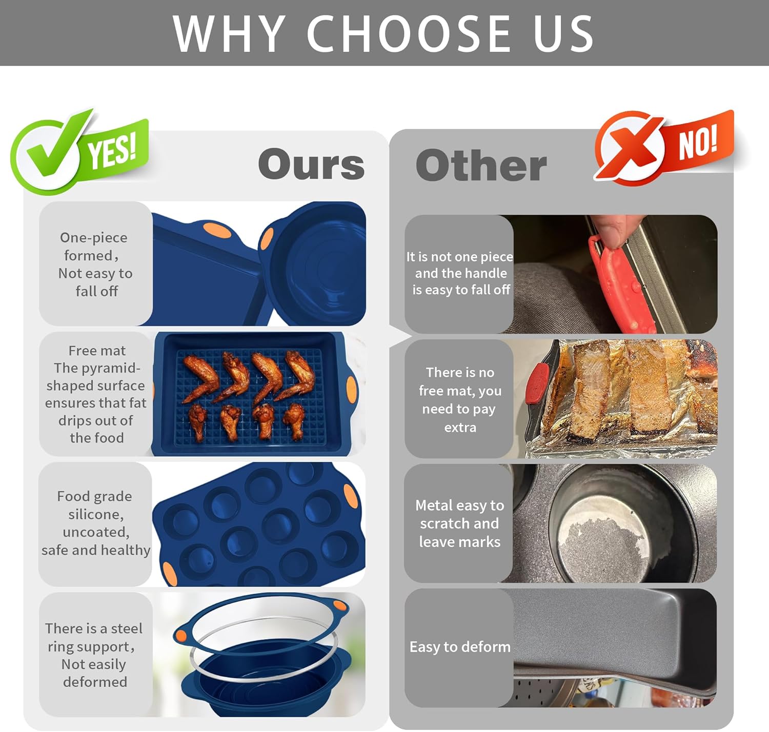 - These baking pans made of silicone with an integrated steel structure, even heating, more strength.