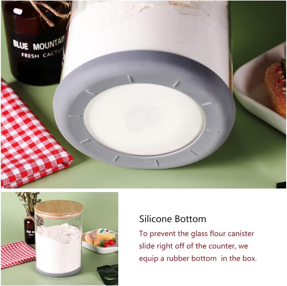 - [Silicone Bottom] To prevent the glass flour canister slide right off of the counter, we equip a anti-skid bottom ring in the box, which makes the container more safe in the pantry.