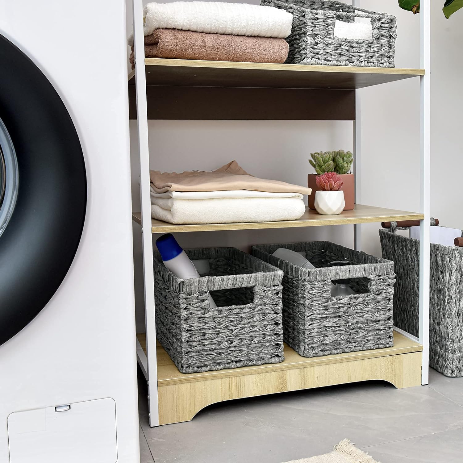 - Design for Convenience - Each rattan storage basket features 2 handles, convenient for transportation, ideal to use as storage baskets for organizing bathroom.