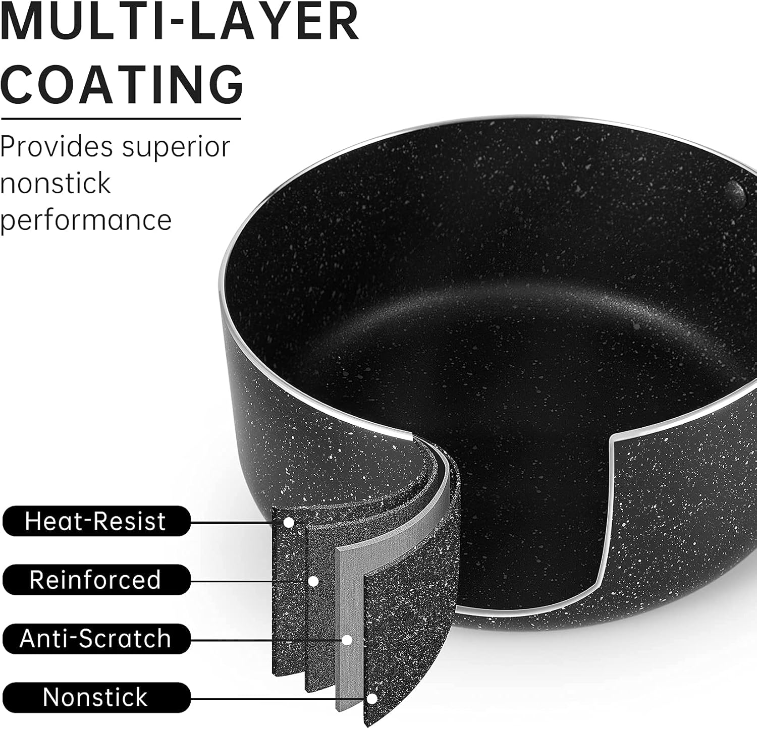 - [Multiple Layer Non Stick Coating]Premium non stick interior featured exceptionally durable, double coated, and scratch resistant,which is ideal for easy cooking,re-heating vegetables,sauces,pasta or soup.Easy to clean for superior nonstick performance,just clean by soft sponges.