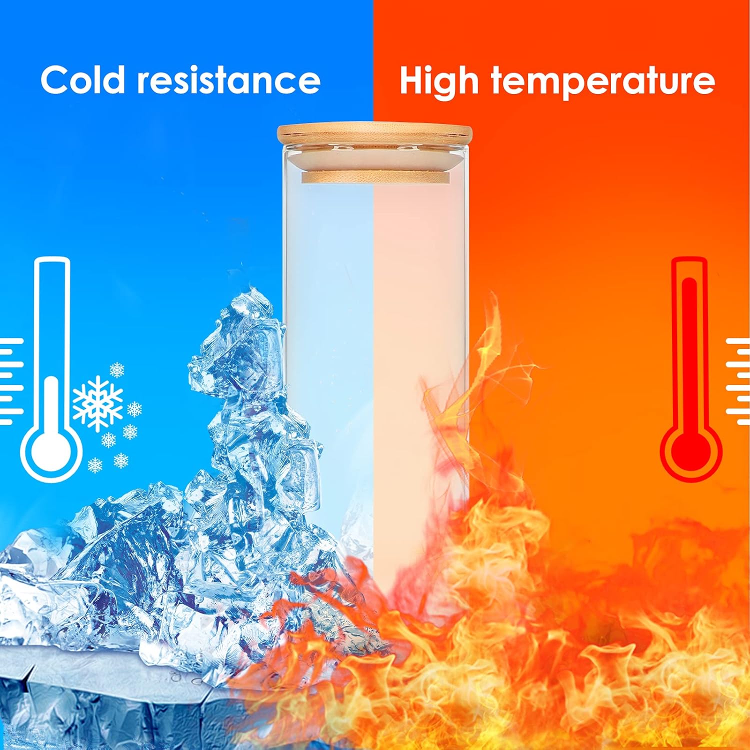 - High Quality: Glass jars made of high-borosilicate glass which features with great stability, higher hardness, heat resistance with better light transmission. Each jar cover comes with a food-grade silicone sealant ring, more effective in preventing fluid flow and the entry of gases and bugs
