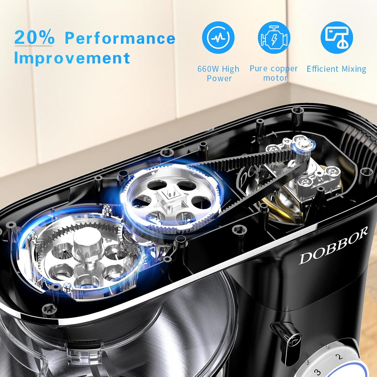 - 【Reliable Quality & Dishwater Safe】-DOBBOR standing mixer has been approved with FCC, ROSH, and other certifications. The overheating protection function of the cake electric mixer can make you feel at ease when baking. Clean-up is simple with a kitchen mixer, As for the bowls and attachments you can either wash them in the sink or safely put them in the dishwasher.