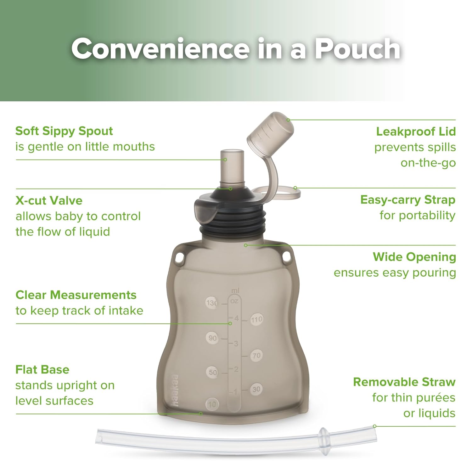 - ππππππππππ ππππ -π ππππππ:Each of these reusable pouches for toddlers and babies includes a variable flow opening for safe, self-paced feeding. Soft silicone spout is gentle on mouths, easing the transition to solids.