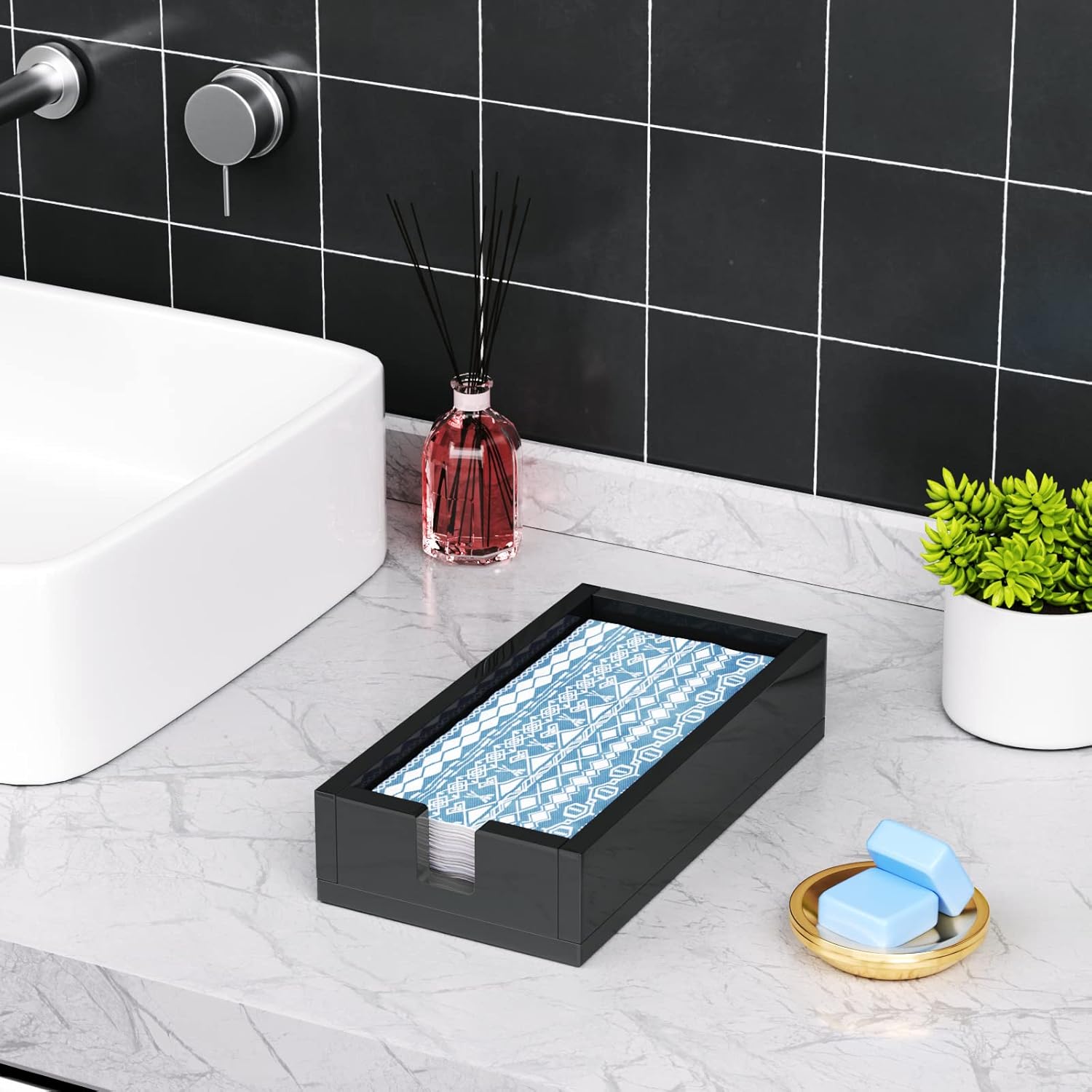 - 【Applicable Size】The bathroom napkin holder measures 8.8 x 5.3 x 2.5 inches , fits standard 8.3 x 4.7x 2.2 inch guest towel/napkins or smaller. Please make sure your napkins fit our holders before buying.
